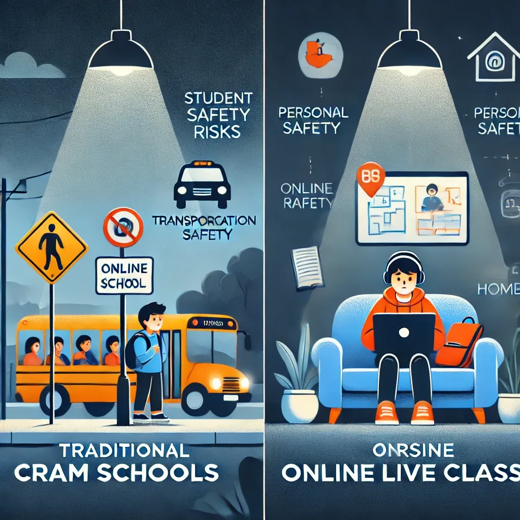 Türkiye’de özellikle büyük şehirlerde trafik, servis kazaları, okul çıkışı güvenlik sorunları gibi birçok risk bulunmaktadır. Dershaneye gitmek için saatlerce yolculuk yapan öğrenciler, fiziksel ve mental olarak yıpranmakta ve enerjilerini verimli kullanamamaktadır. Online canlı dersler sayesinde: