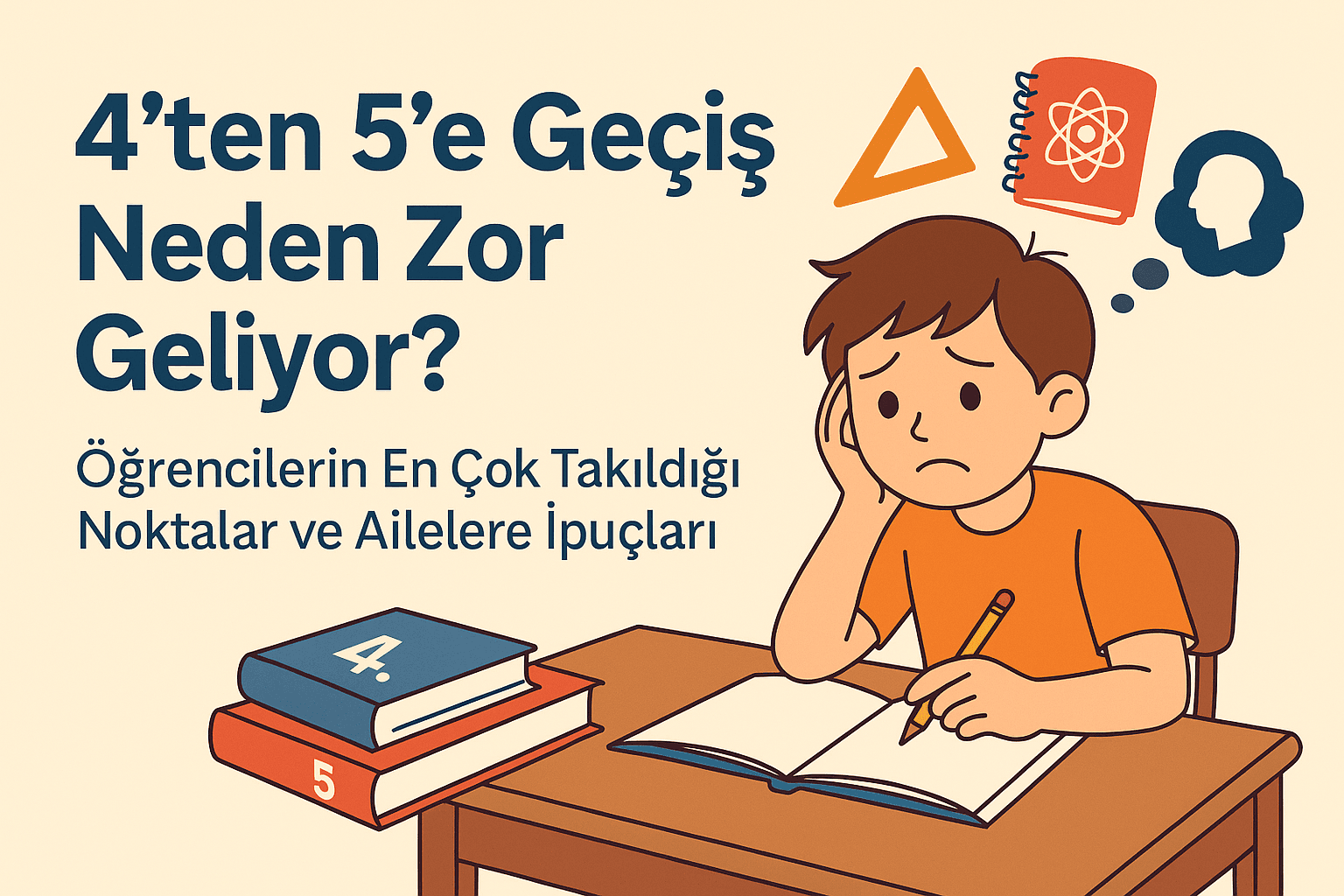5. sınıf matematik rehberi 4. sınıfta çok iyiydik… 5. sınıfta matematik neden bir anda zorlaştı? Sorun çoğu zaman “çocuk yapamıyor” değildir. Asıl mesele; değişen okul…
